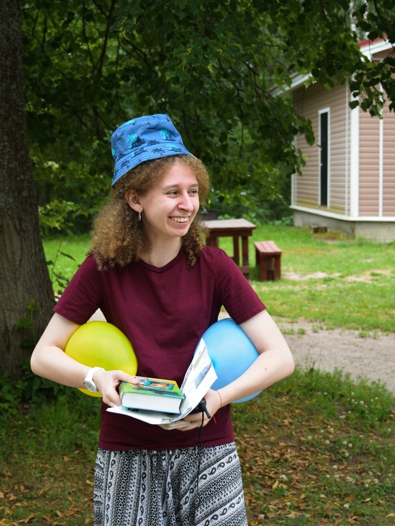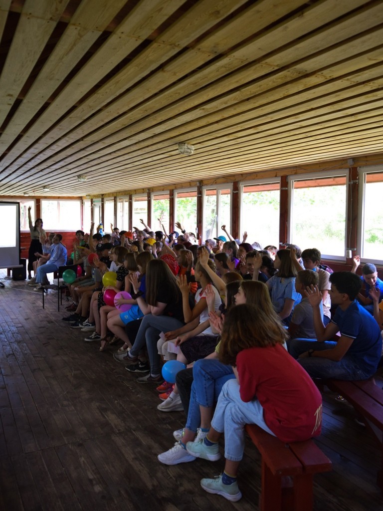 Все началось еще в автобусе — некоторые нашли друзей уже там. Мы пели песни и ехали веселой компанией. Когда мы подъезжали нас бурно встречали вожатые. Так и начался наш первый день в лагере.