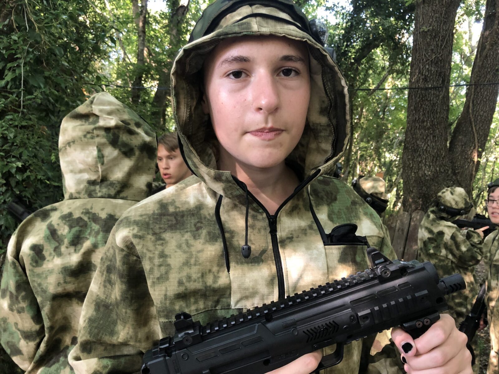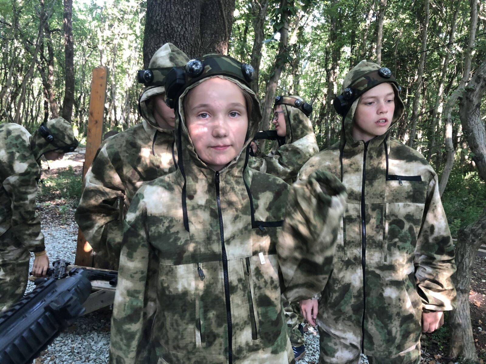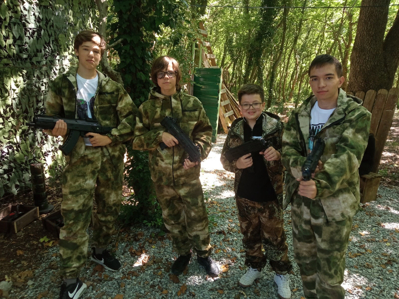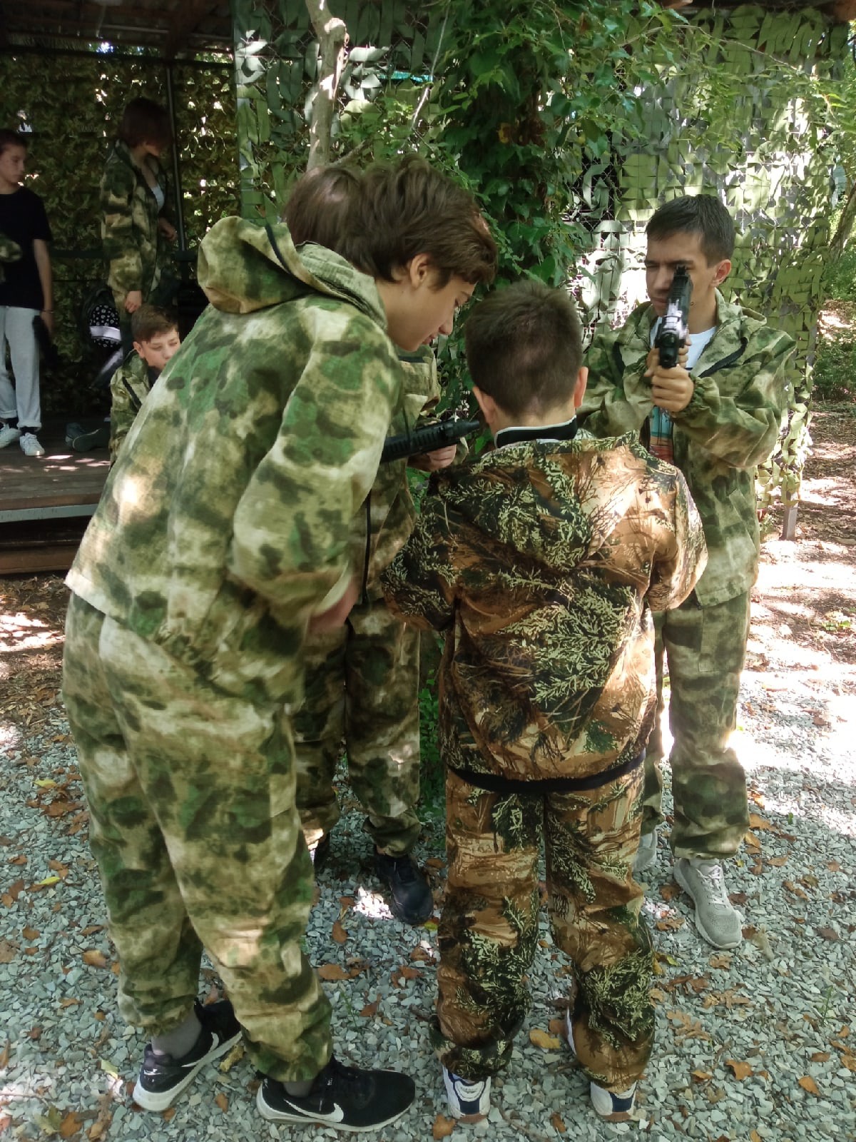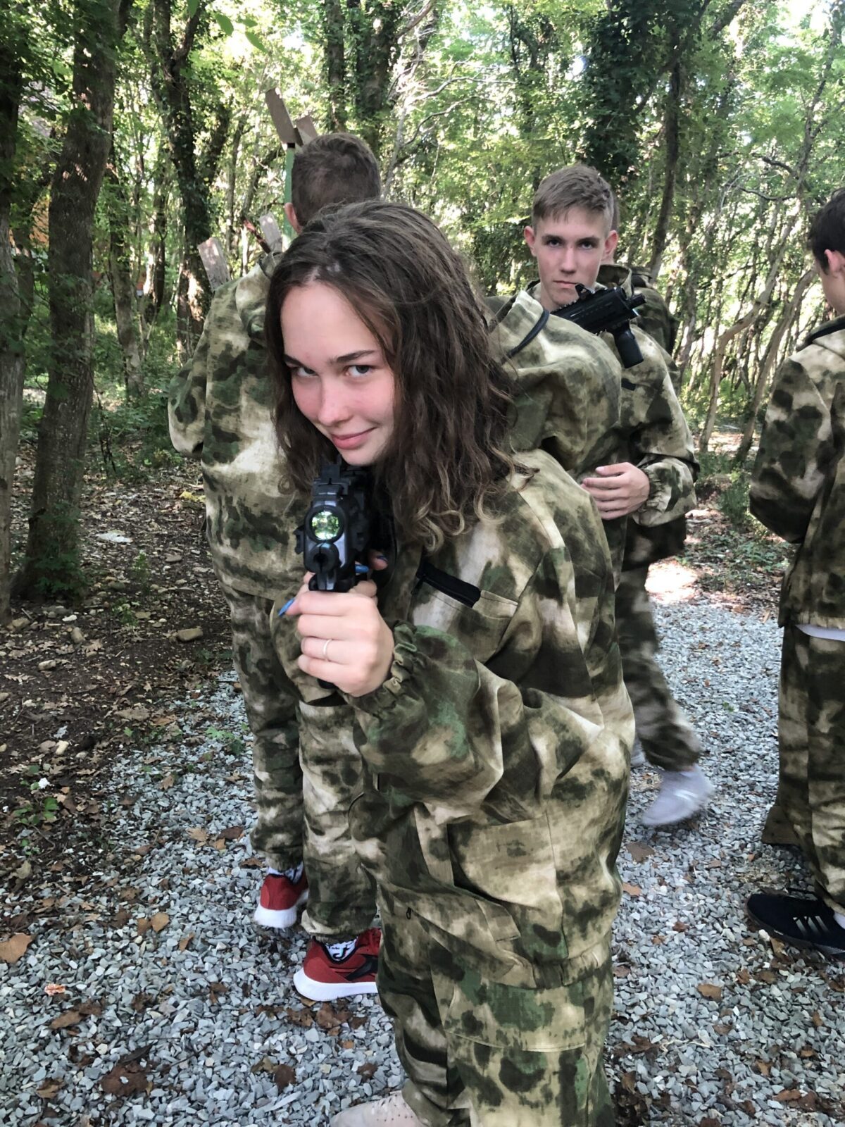 После завтрака вместо профилей мы отправились на Лазертаг. Нам предстояло разделиться на команды, суметь захватить и удержать контрольную точку. Надев специальный камуфляж, каждый смог на миг стать солдатом с оружием в руках.