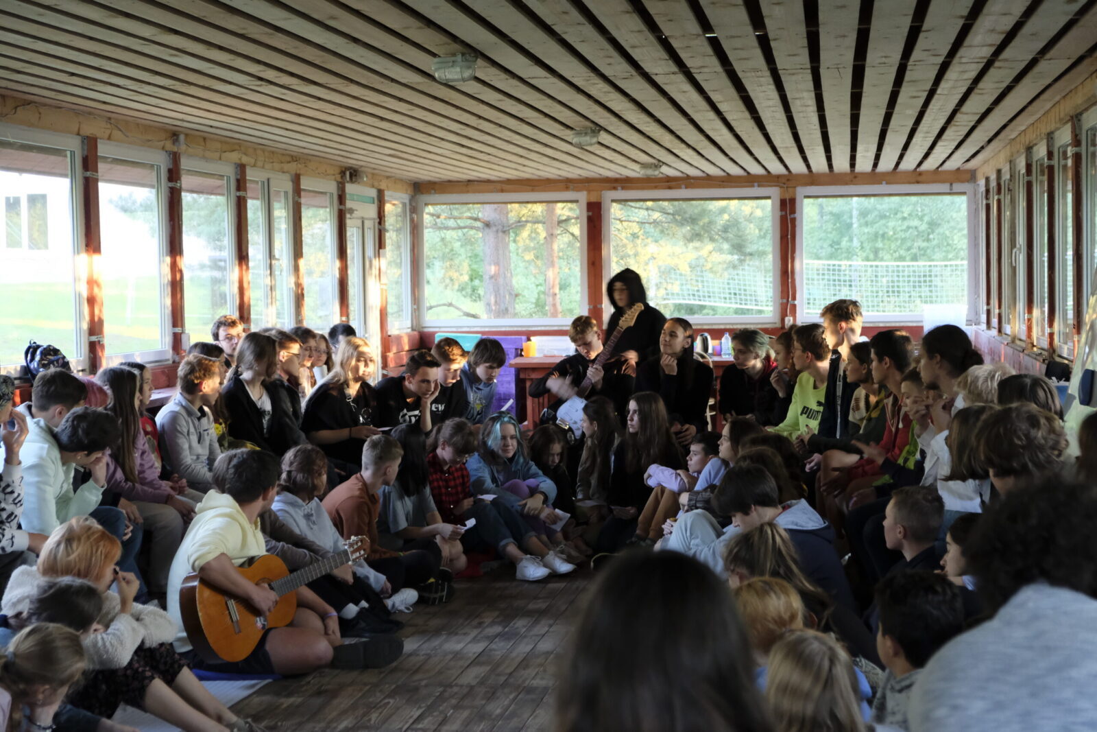 Перед вкусным ужином на отрядном времени мы готовились к лирическо-музыкальному вечеру. Нам попадались различные темы, которые мы должны были воплотить в стихи, песни и легенды. Темы были самые разные: от любви до сказок. После чего мы делились тем, что вышло с другими отрядами в уютной обстановке, обнимаясь на пледиках и подушках. Все это закончилось внезапным орлятским кругом, где мы смогли продолжить музыкальный вечер и с теплотой в душе разошлись на отрядные свечки и, наблюдая за звёздами в кругу друзей, проводили этот чудесный день.
