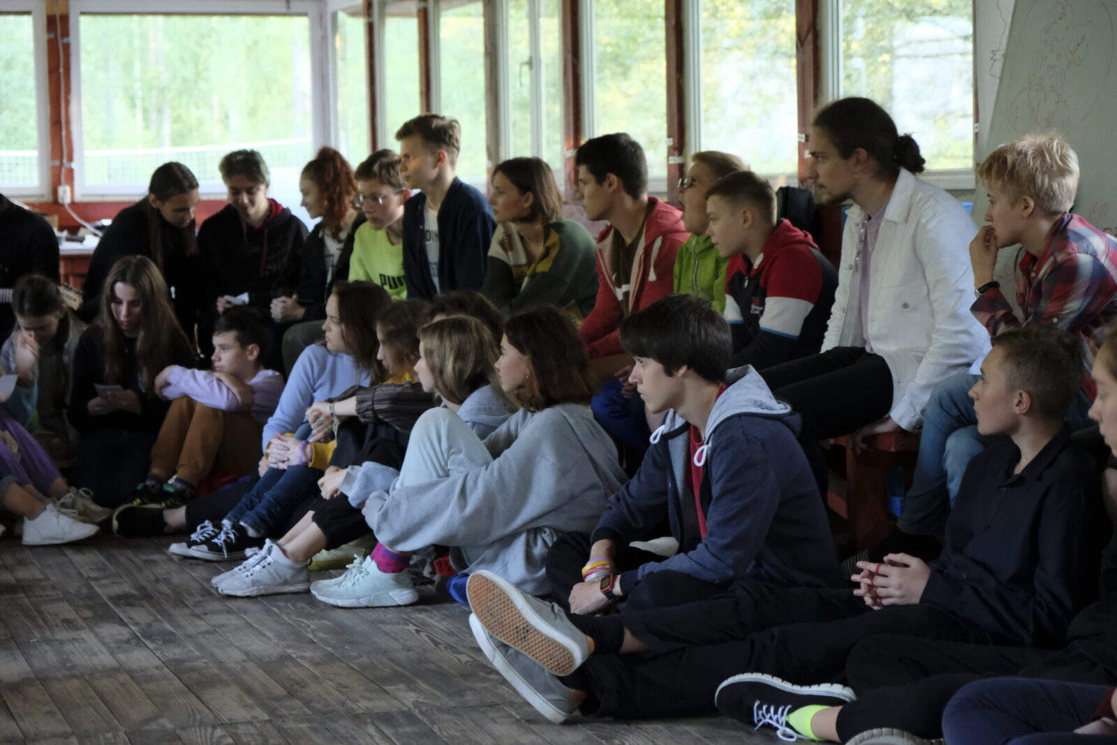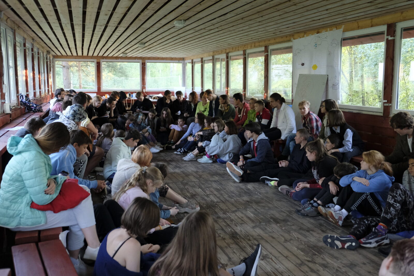 После обеда началось самое интересное. В предыдущие дни мы собрались в группы по советам дел, чтобы организовать друг для друга интересные дела. Такие советы, как интеллектуальное, танцевальное, яйцелёт, музыкальное, квест и много других групп вместе думали и планировали проведение общелагерных событий.
