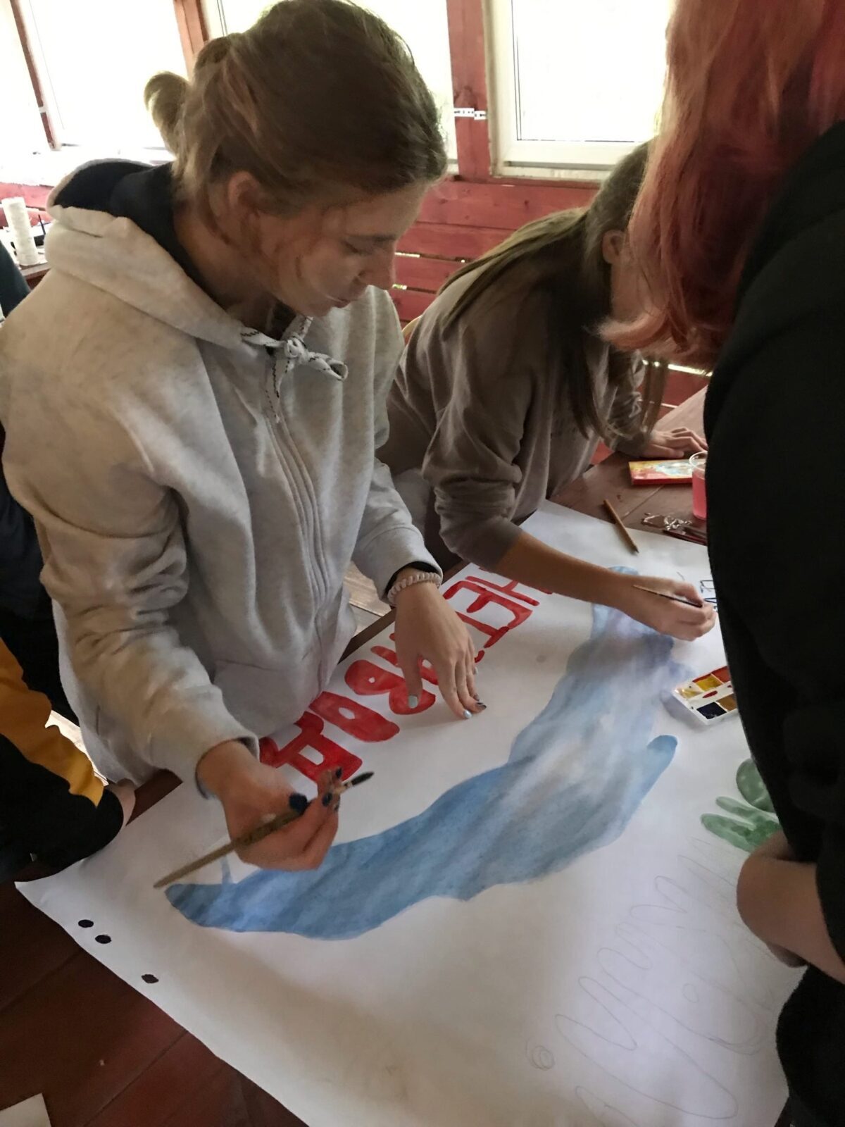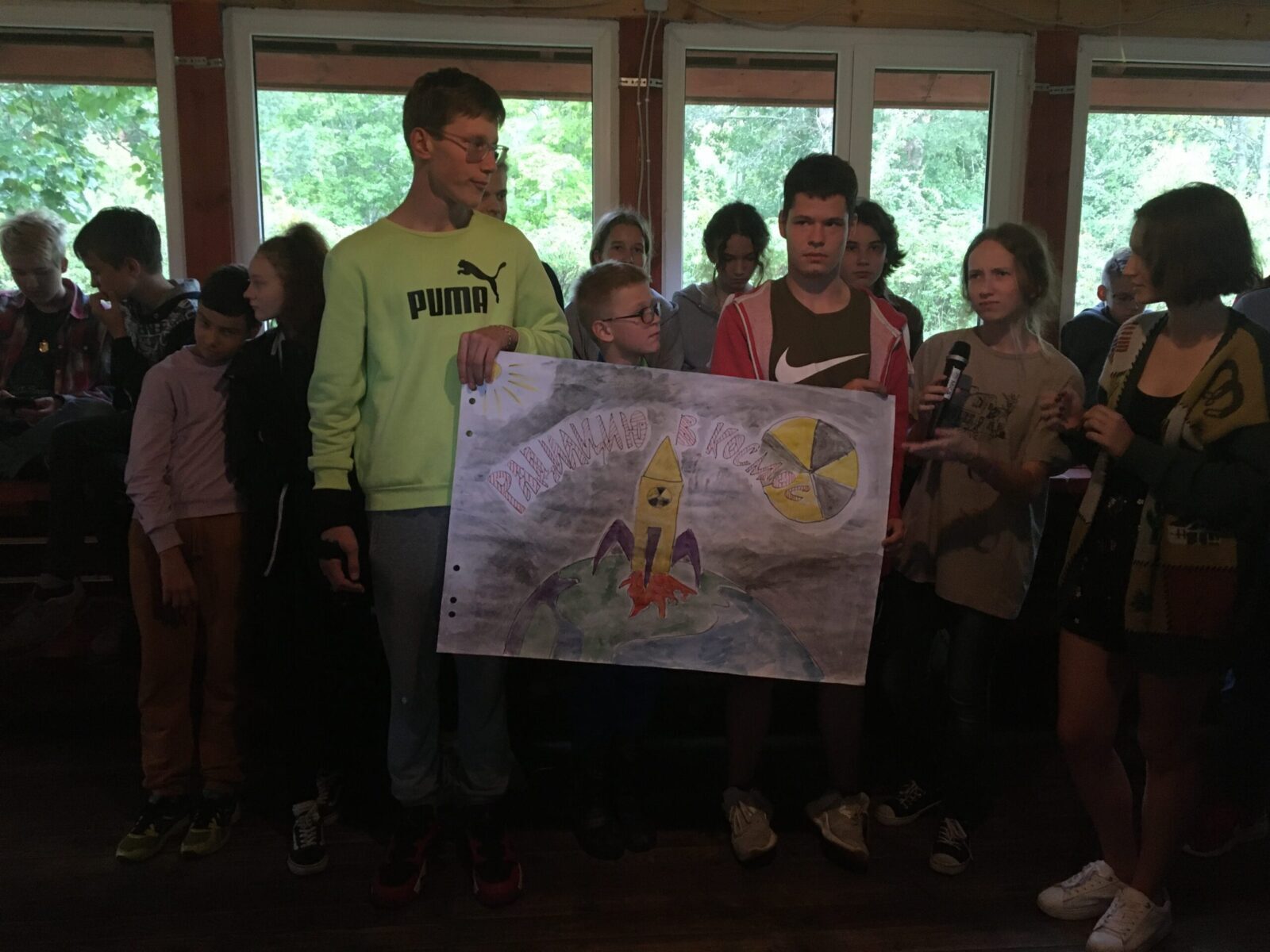 После бурных переговоров мы переключились на эко-дело «планета зовёт». Каждый отряд получил тему для обсуждениz какой-то экологической проблемы нашей планеты, и мы рисовали плакаты в поддержку идей по их решению, после чего представляли свои идеи другим отрядам. Я считаю, что у всех получились завораживающие и необычные работы, а креативные идеи было очень интересно слушать.