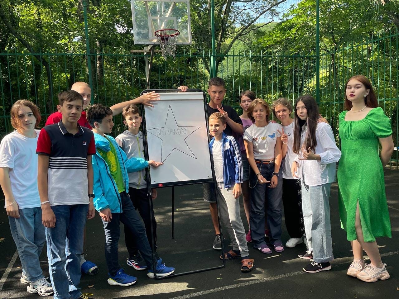 После завтрака мы отправились на старт дня, где дежкомы запустили игру «прищепка». Суть игры в том, что нужно незаметно прицепить прищепку на человека.