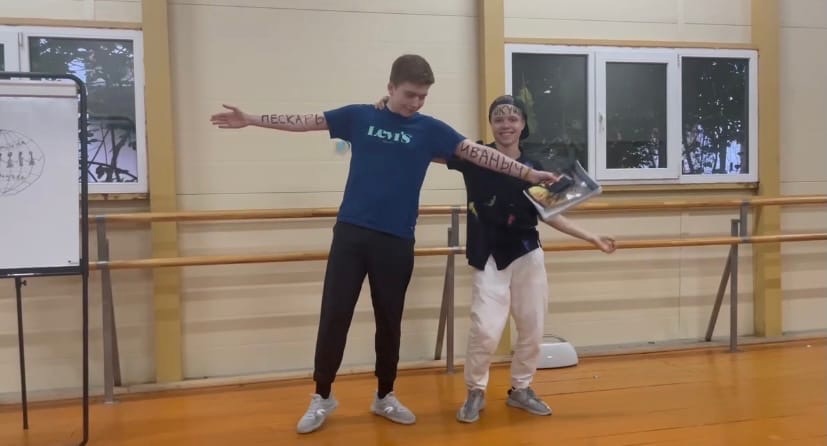 Каждый из ребят получил карточку с именем и фамилией того, кого он должен «убить» определённым образом — поцеловать в щечку или ущипнуть за щиколотку. 🤭