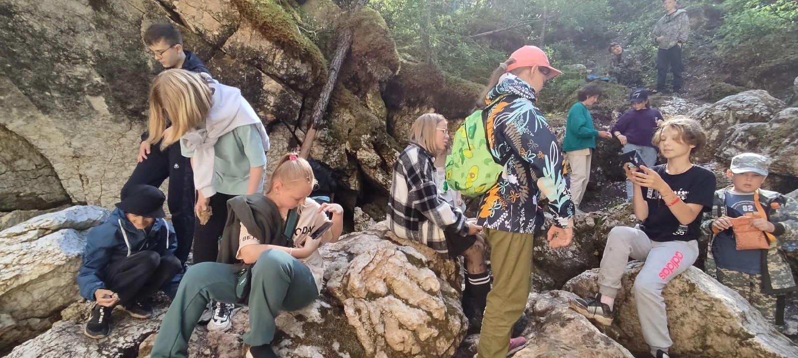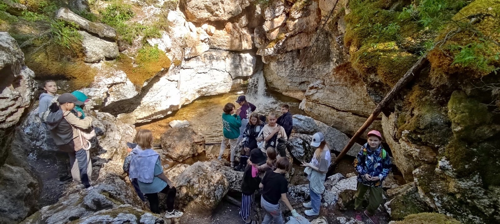 Ребята с биологии сегодня еще и ходили гулять до водопадика в километре от базы. Было здорово, хотя очень устали.
