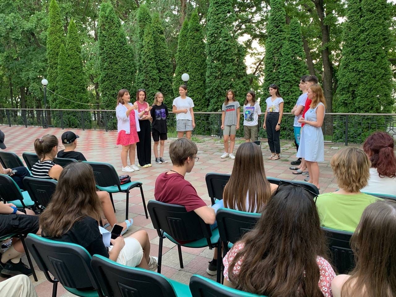 К вечеру ребята занялись постановкой театрального представления. Перед каждым отрядом стояла задача решить проблему, связанную с общением и изгоями в коллективе: «Эффект стадо», «Социофоб», «Не как все».