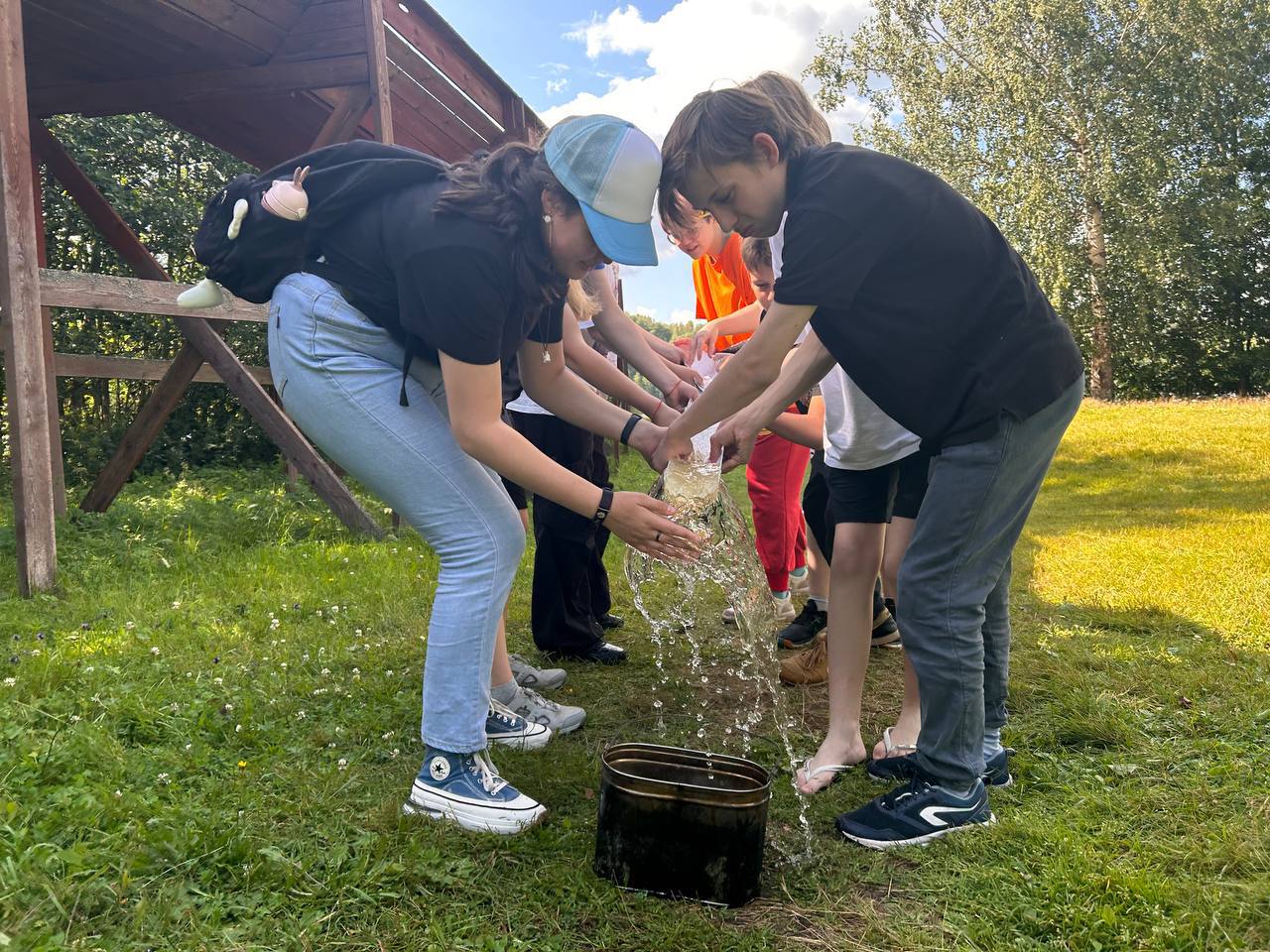 Помимо этого, мы прошли тропу доверия, где проходили разные станции, нашему отряду очень запомнилась — «переливание воды». Разговаривая друг с другом и разрабатывая стратегии, мы сотрудничали и объединялись, но за прохождение мы получали не только бесценные эмоции, но и зарабатывали баллы-деньги! 🌈