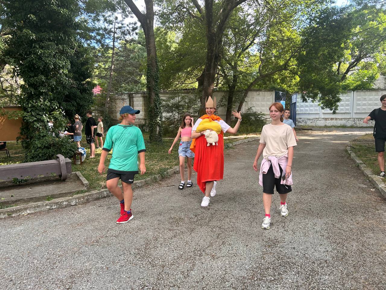 Несмотря, на небольшую грозу в начале дня, поход на море все равно состоялся! Солнышко грело, вода чудесная — благодать. Не успели мы вернуться с пляжа, как началась ролевая игра. Ребята разделились на мятежников и стражников. Стражники защищали прекрасную королеву Ольгу, а мятежники всеми усилиями пытались ее свергнуть. Но в конечном счете победу все же одержали стражники, доблестно оберегавшие королеву. 👑