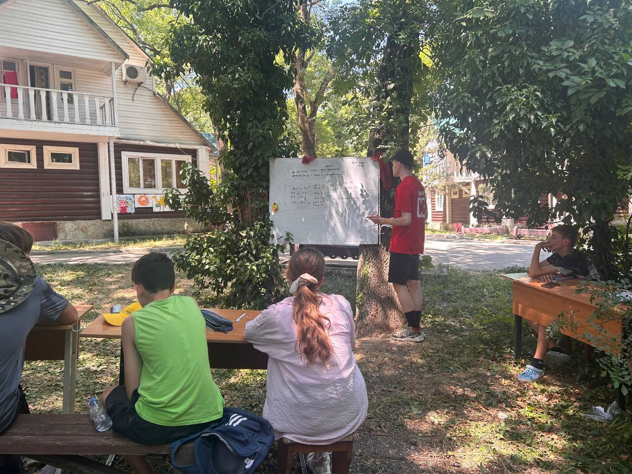 Ребята обливали друг друга из самодельных водяных пушек. Задача была облить бумажный, но хорошо спрятанный, домик соперников и защитить свой.