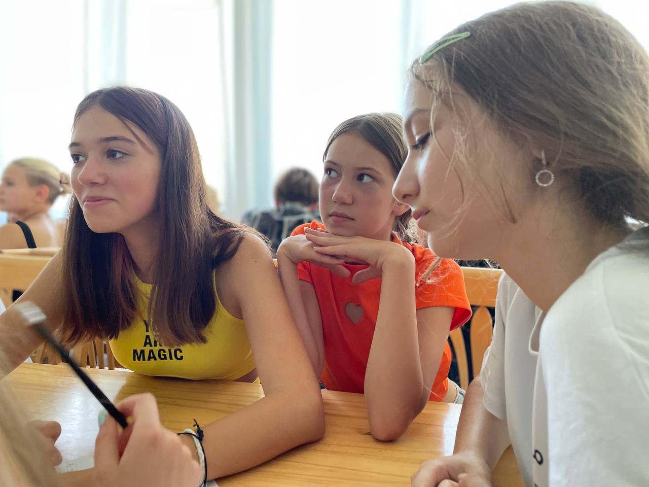 Вчерашнее утро началось с вкусного завтрака, зажигательных танцев и интересной сценки дежурных командиров, которая показала нам тему дня: стройте мосты от человека к человеку.