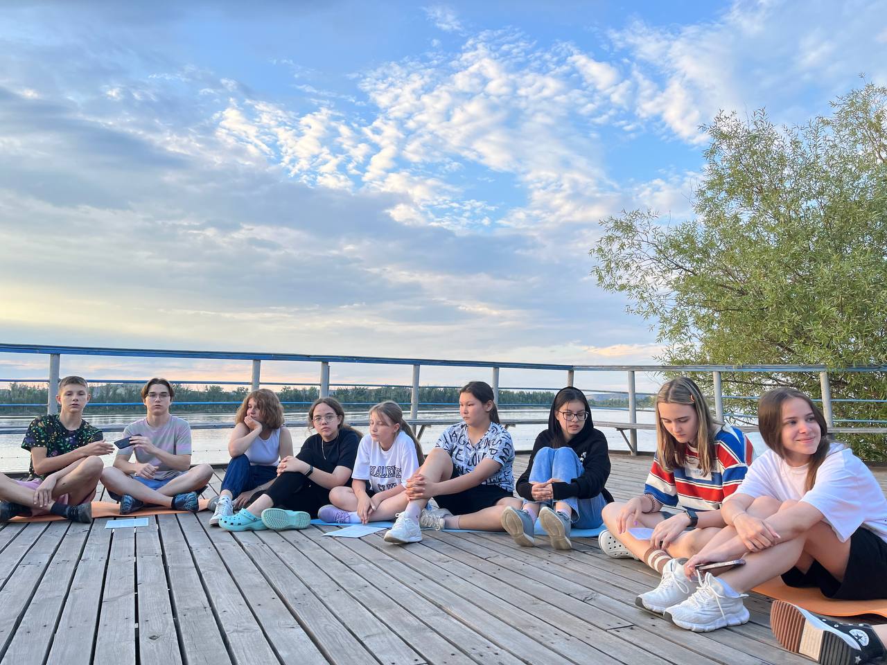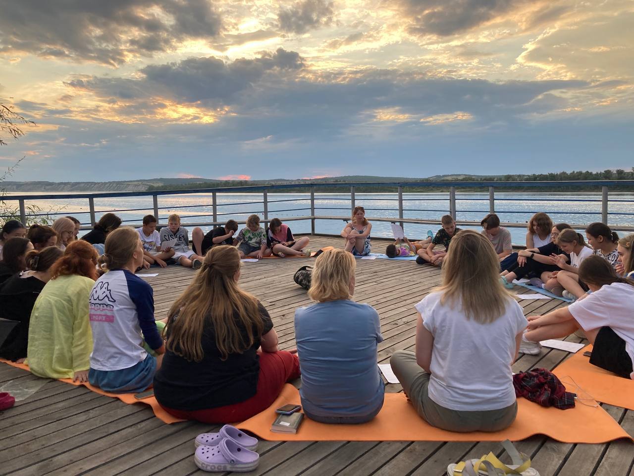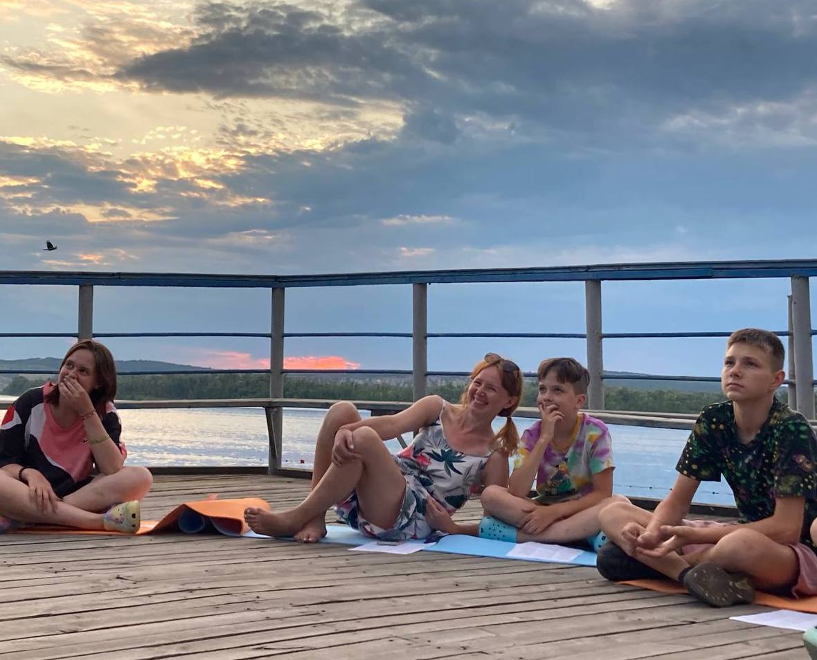 День начался с занятия йогой на живописном берегу Волги. После вкусного завтрака ребята собрались на старт дня, где в прямом эфире мы читали письма от наших родителей и друзей.