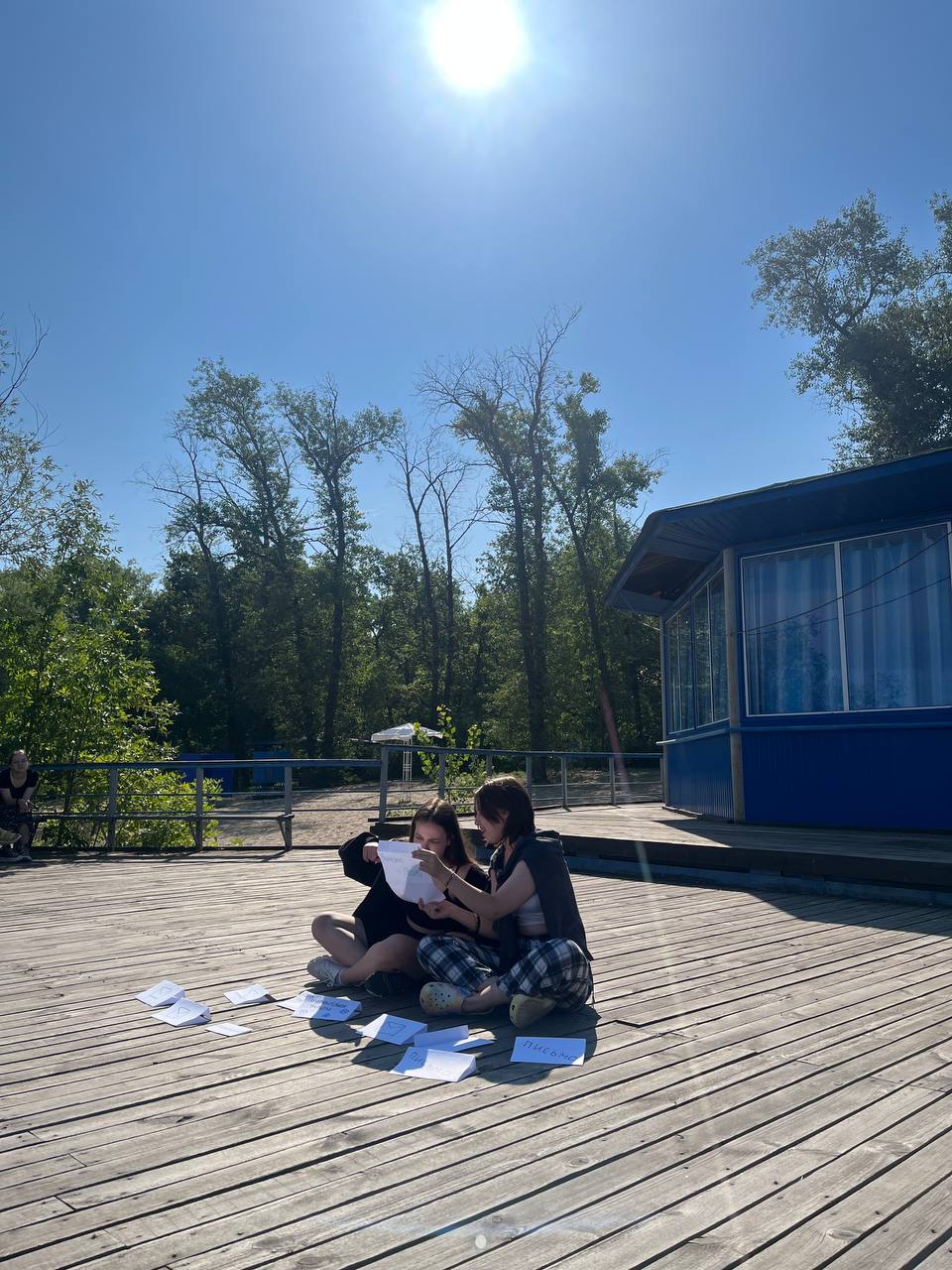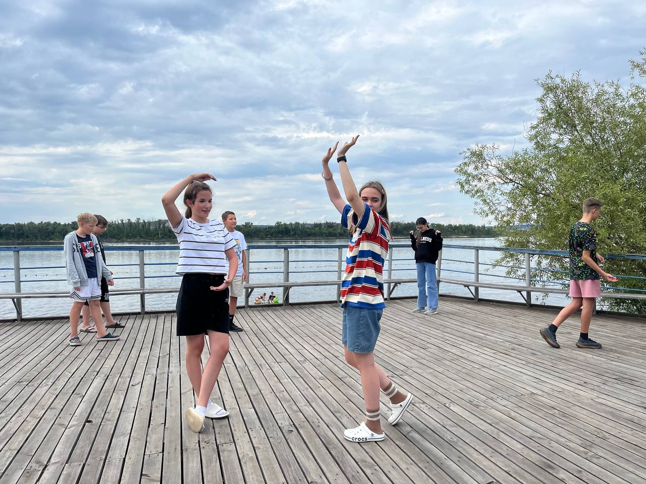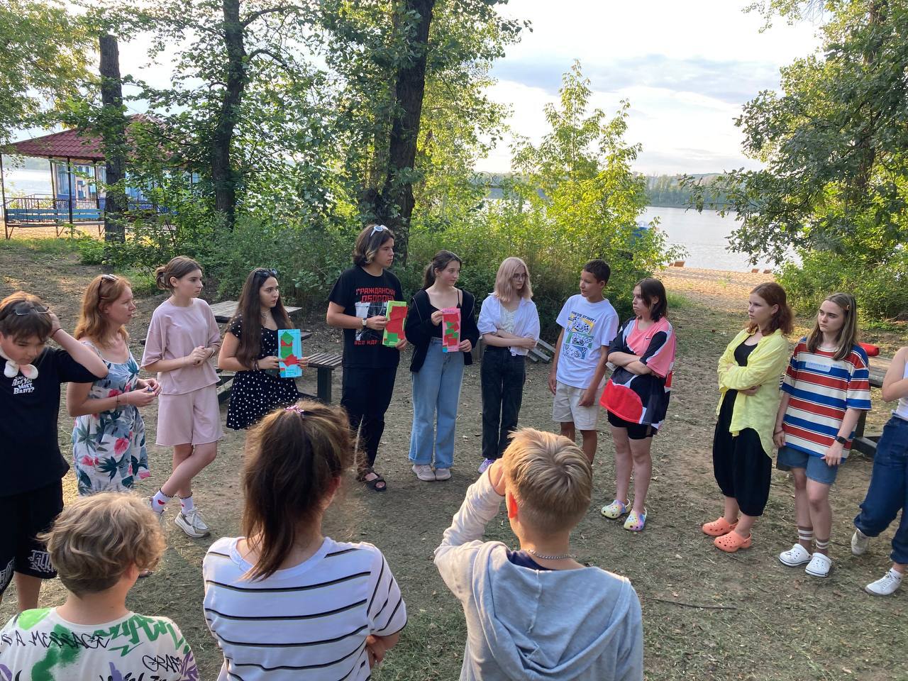 День начался с занятия йогой на живописном берегу Волги. После вкусного завтрака ребята собрались на старт дня, где в прямом эфире мы читали письма от наших родителей и друзей.