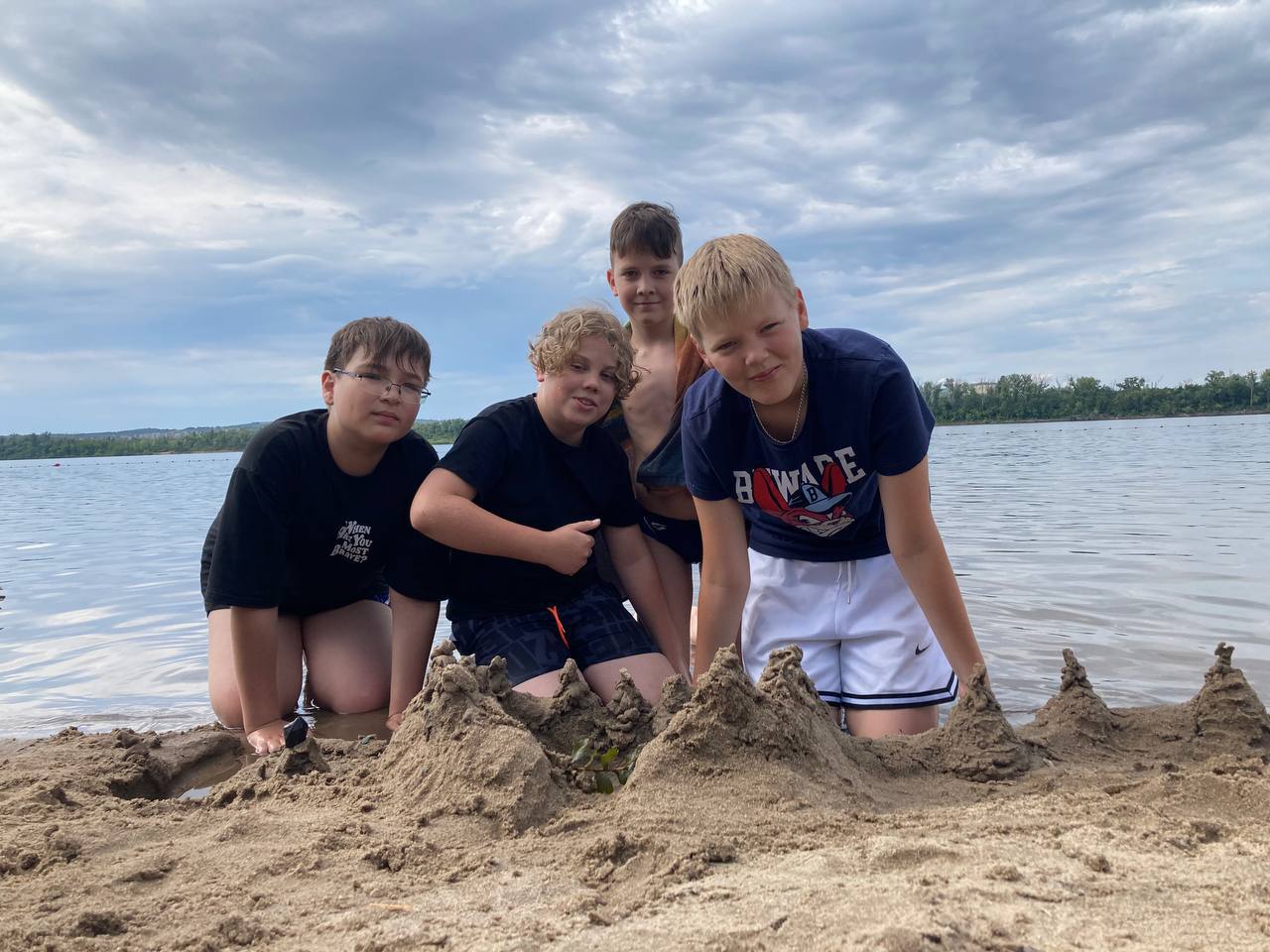 Вторая половина дня началась с приятного отдыха у Волги. Творчество не обошло ребят стороной и тут — им удалось создать из песка древний замок с сокровищами! 🏰