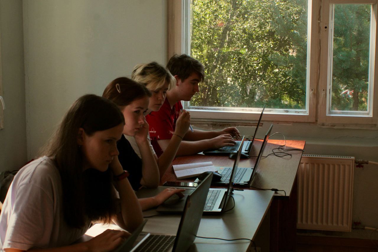 Сегодня профили актерского мастерства, социотехники и психологии вошли в кооперативный режим* для совместного просмотра немого фильма. На математике ребята занимались геометрическим построением фигур, а программисты проходили строки.