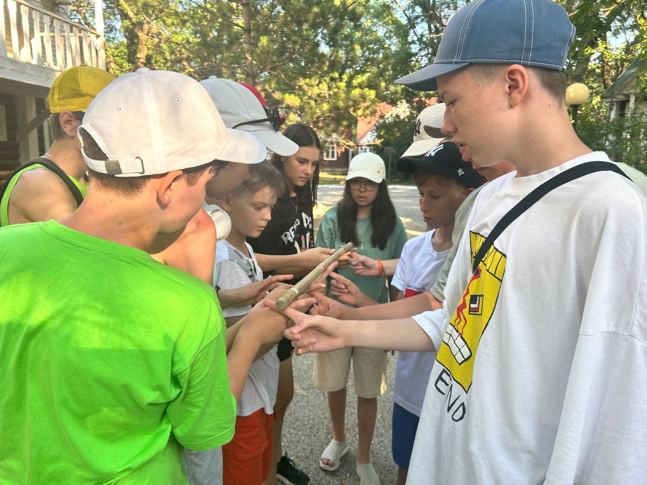 👫 Далее мы вернулись в лагерь, чтобы воплотить в жизни очередную идею начальства. Мы проходили разные испытания, чтобы эффективнее работать в команде.