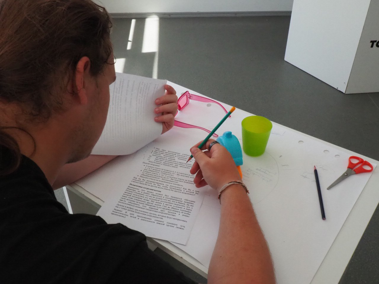 Наш день начался с того, что мы разделились на учебные профили. На киноискусстве ребята изучали устройство камеры, на актерском мастерстве тренировали ораторское искусство, а на педагогике разбирали роль человека в обществе.
