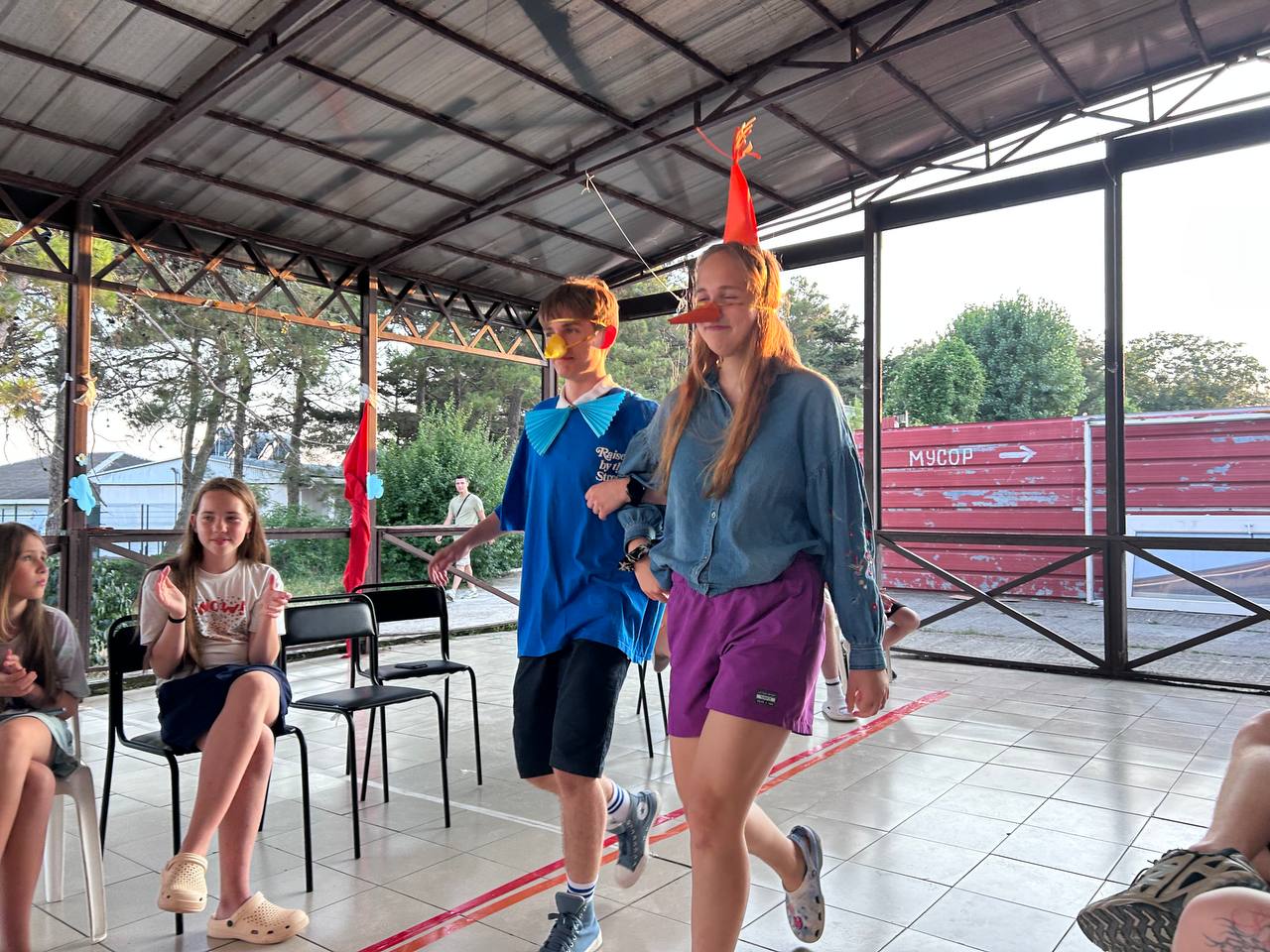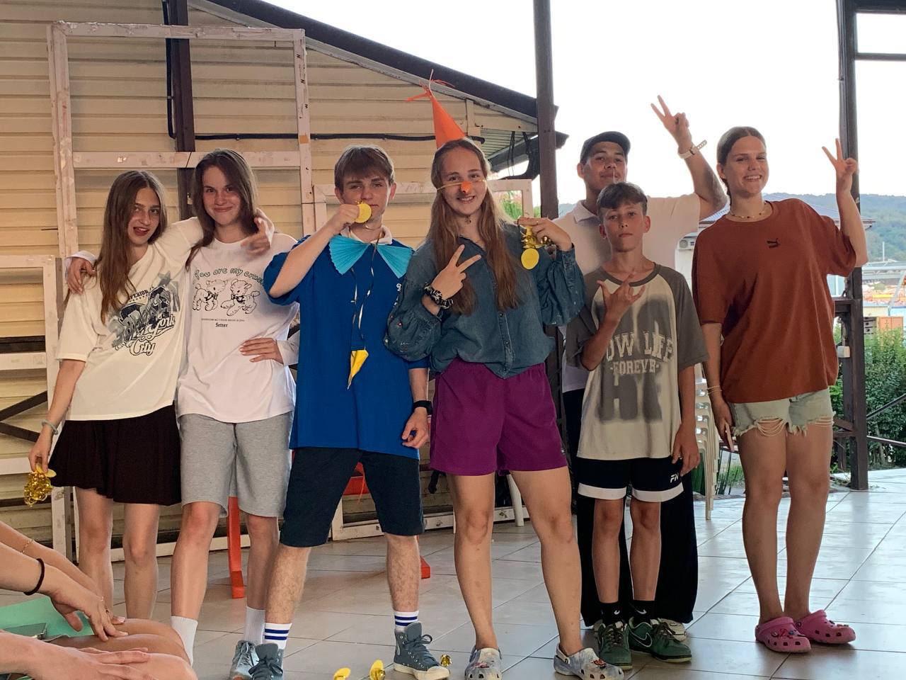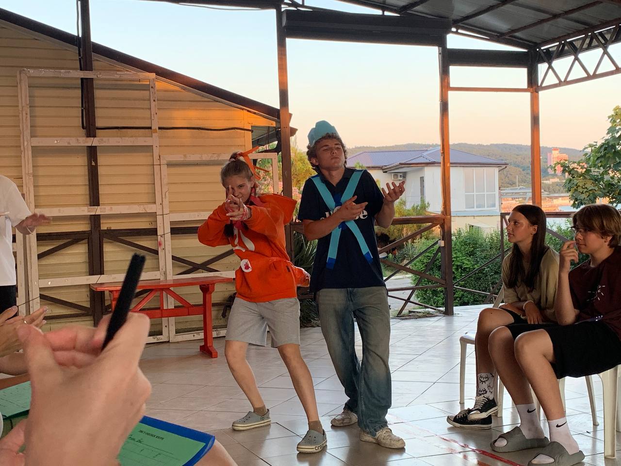 После обеда дежкомы и совет дела подготавливали дела на сегодня, а остальные играли в мяч или отдыхали в комнатах. Потом мы соревновались в игре «Краденая искра» и все промокшие поели полдник и пошли на море.🥵